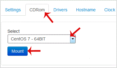 . Now. "CDRom" tab and if the CD-ROM is already mounted, click on unmount and then select your operating system from list. Then click on "Mount".