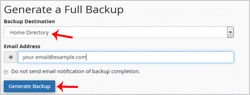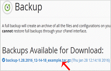 After the cpanel backup is completed, you will receive notification and the backup will be available for download under the "Backups Available for Download" list on the Full backup page.