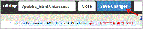 7. Make changes to your .htaccess file and then. "close Changes" babies.