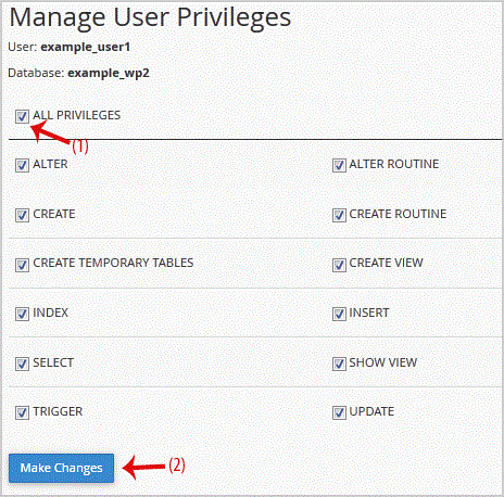 1. Log into your cpanel account.2. In the "Databases" section, click on "SQL Databae" Icon. 3. Scroll down to the end of the page and under "Add User to Database", select a user from the . list, and then choose a Database from the list... "Add" babies.5. On "Manage User Privileges", mark the box "ALL PRIVILEGES" and click on "Make Changes".