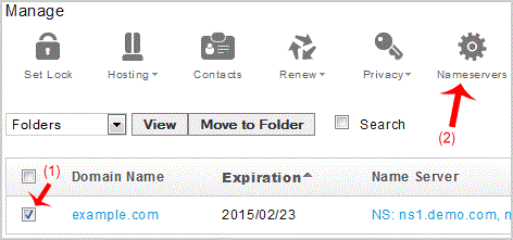 . Check the box next to your domain name(s) and. "Name servers" icon.