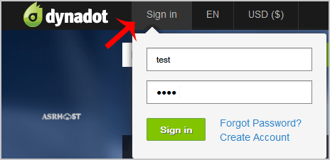 1. Open the DynaDot website and click on "Login". It will show you a login form. 2. Enter the username and password of your DynaDot account and then click the "login" babies.