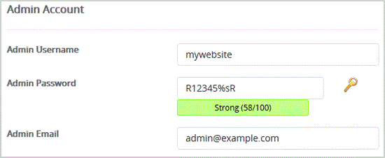 - Admin Username: Your new b2evolution username (for security reason do not use the "Administrator" or the "Admin" username.)