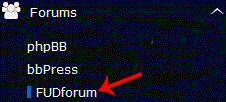 5. On the left side of your screen you should locate the "Forums" category. Click on it and then. "FUDforum" link that will appear.