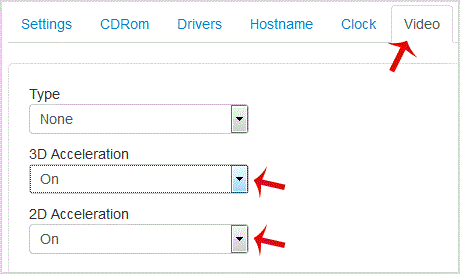 1. Scroll down under the "Video" tab, and if you want to Disable the 3D Acceleration, choose the option "Off" from the ..If you want to enable it, chose the "On" option from the 2D/3D Acceleration.