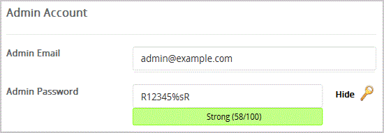 Admin Email: Your e-mail address.Admin Password: Use a strong password.