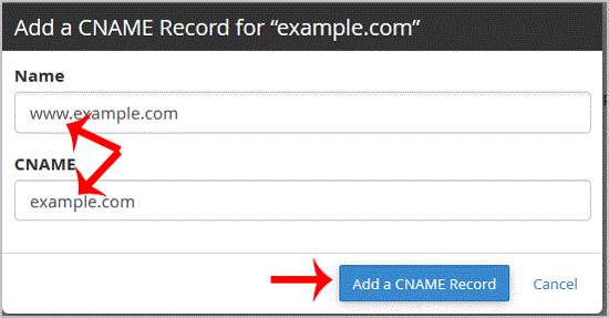 Name: Enter the name .add, such as "www" and cpanel will automatically add a domain name like www.example.com.